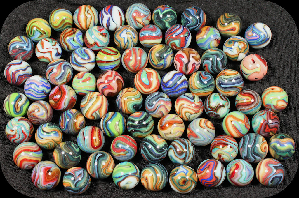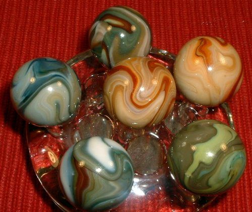 While these are all very colorful and beautiful marbles, they hold no particular value to collectors other than current face value. Most of these are 10 cents to 50 cents each.