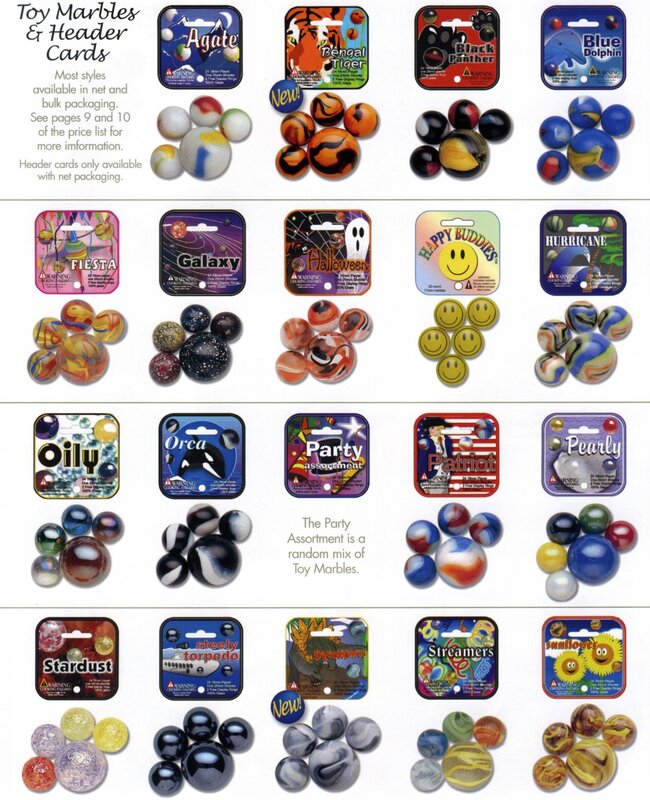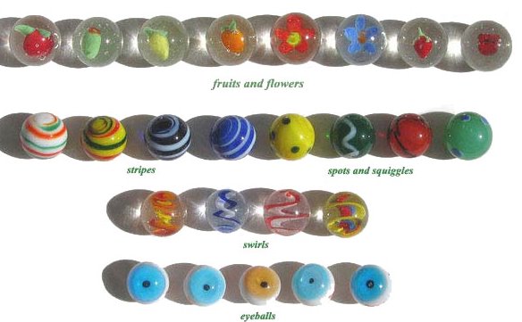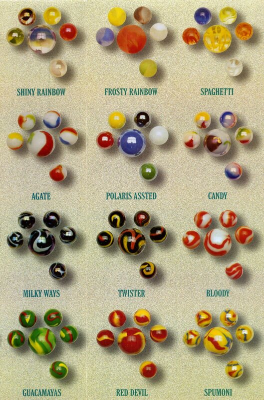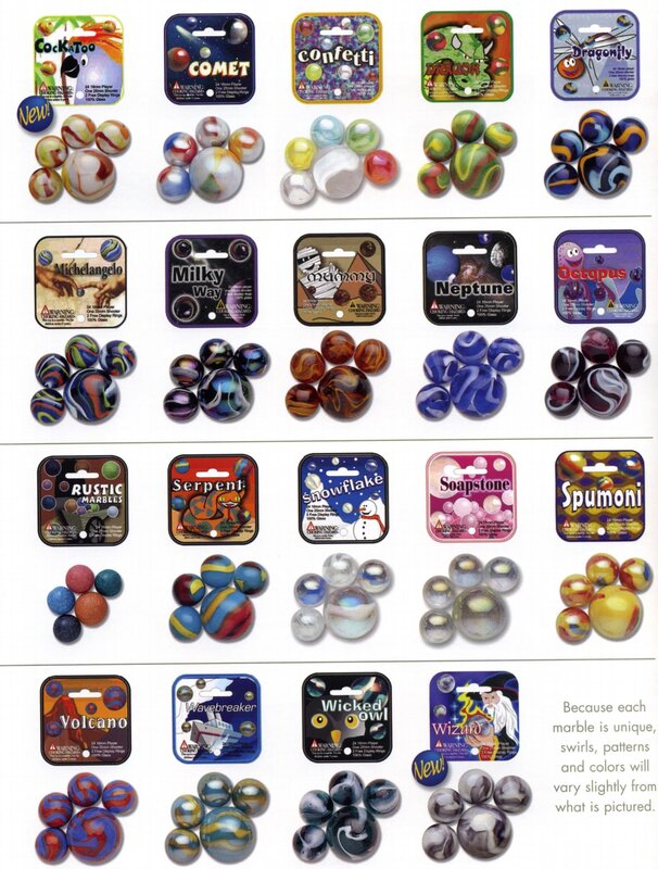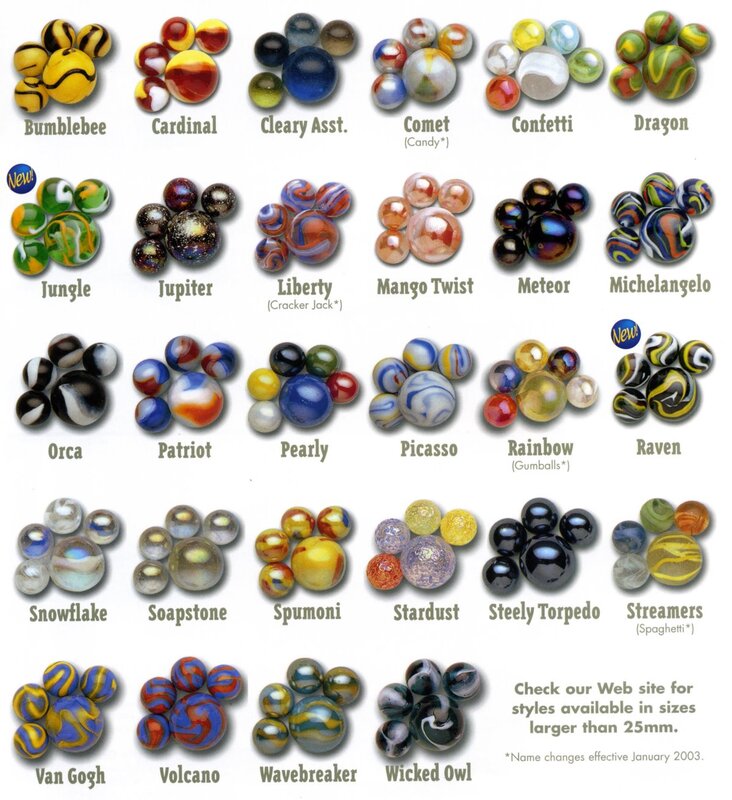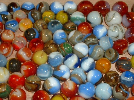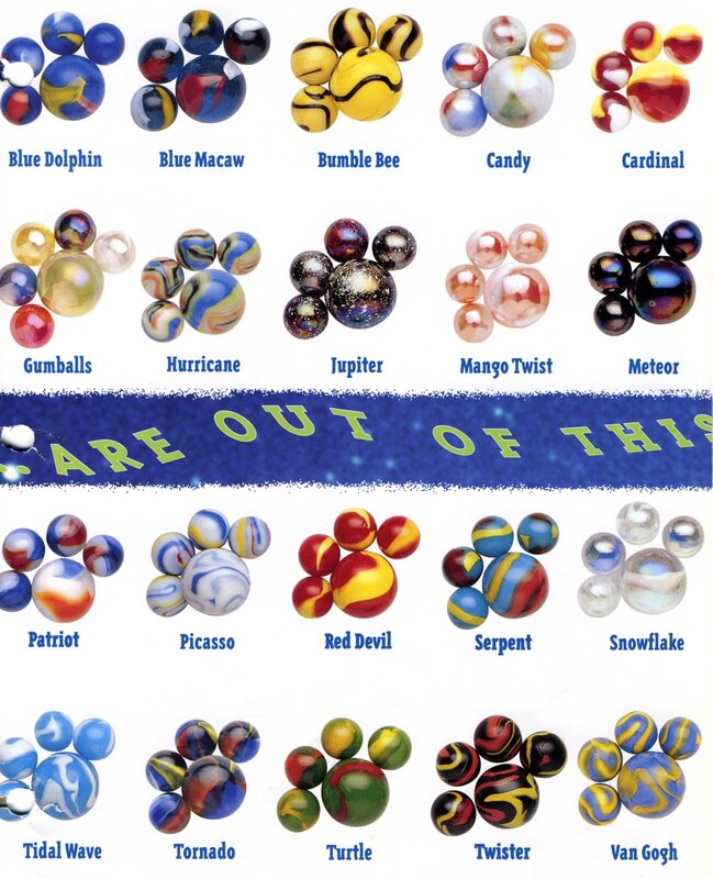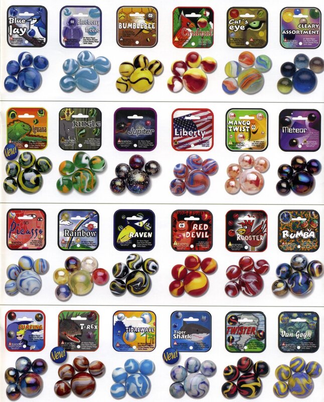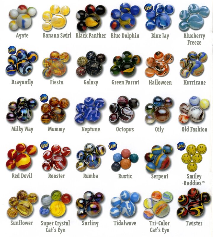 A few marble companies remain in the United States today including Marble King and Jabo, Inc. Most marbles however are manufactured in Mexico and China. Below are examples of some new marbles.