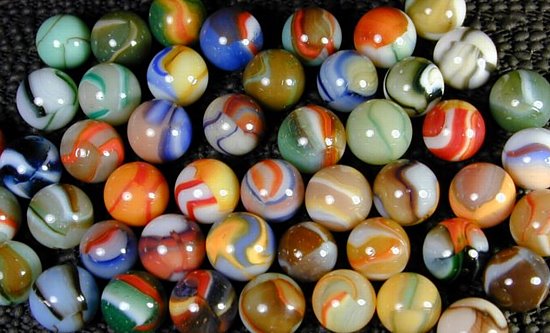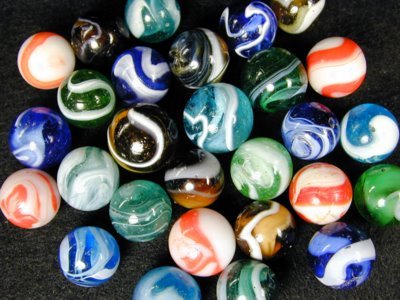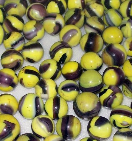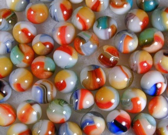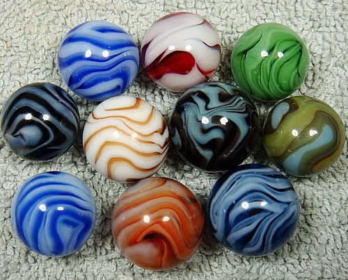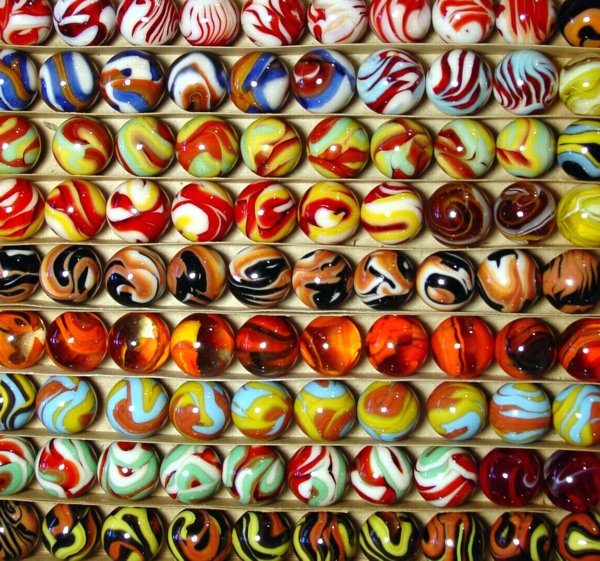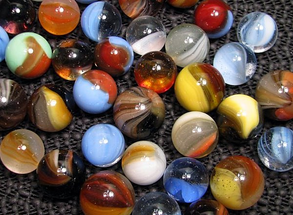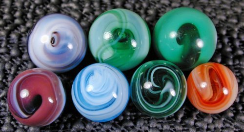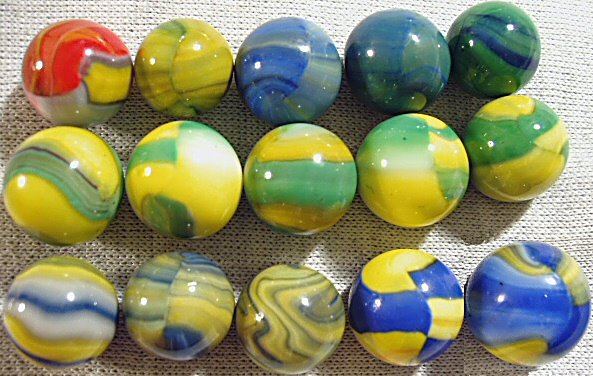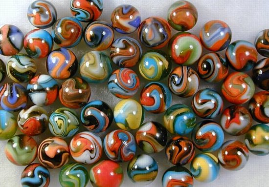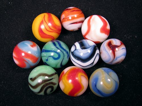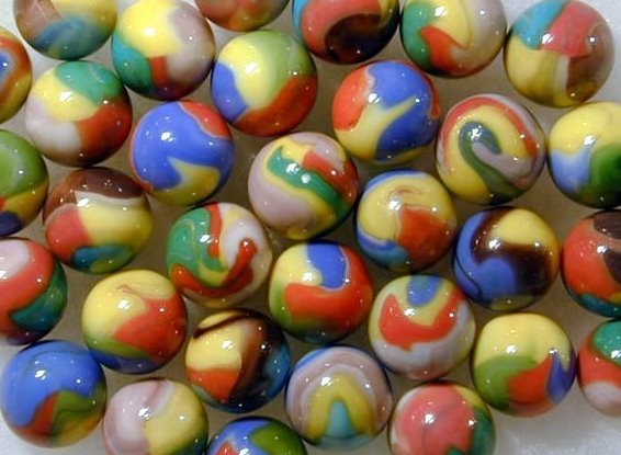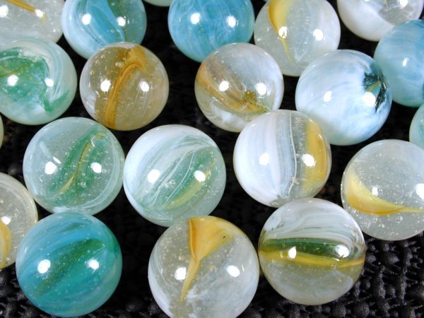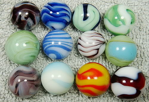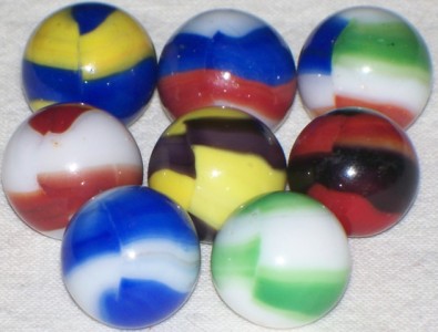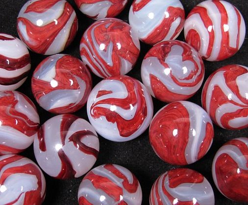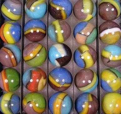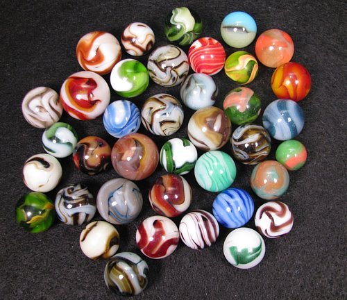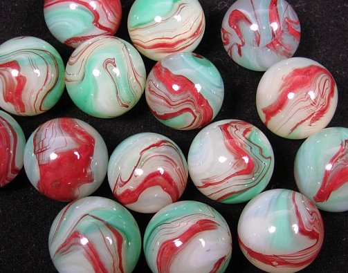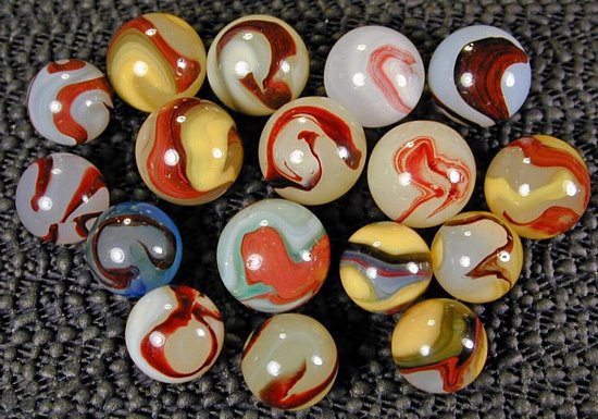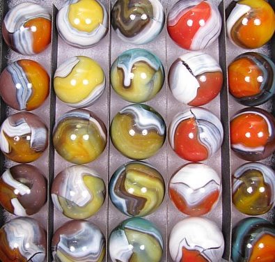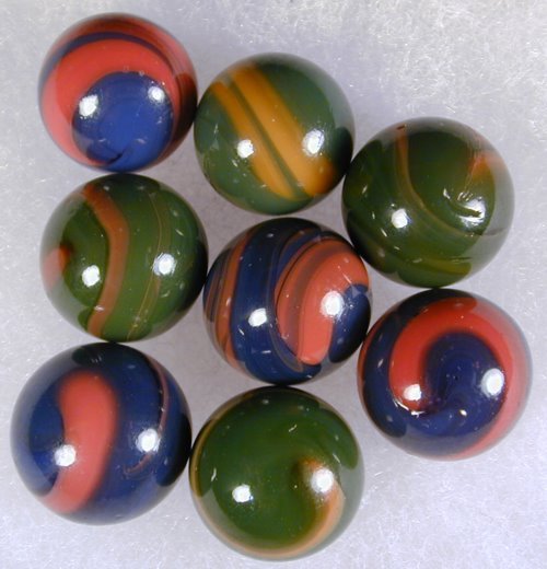 These remain one of the most popular of collectible marbles. There are hundreds of color combinations and styles. Only a few can be shown here but you will get an idea of some of the most common styles companies produced as well as some of the most collectible and valuable.