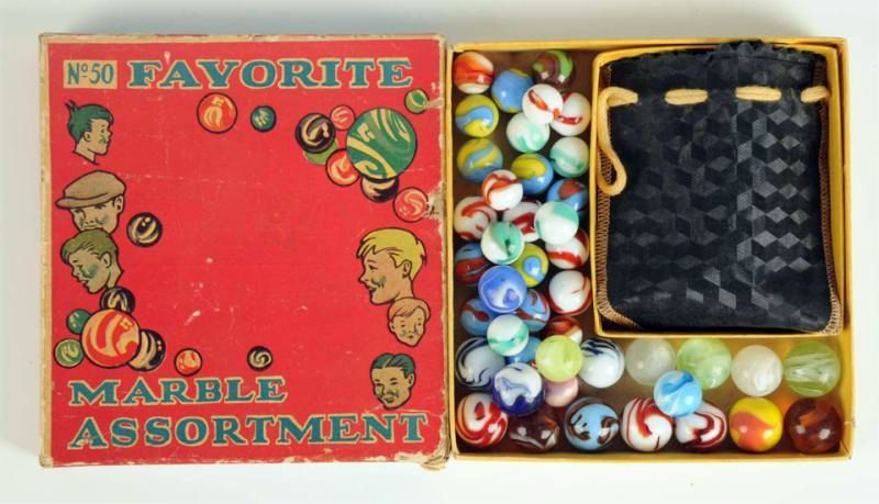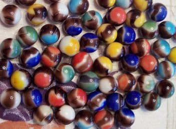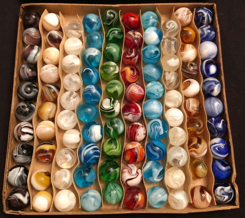 Clay marbles were the earliest type of marbles made in the United States. However, with the advent of marble machines in the early 1900's glass marbles were able to be mass produced at up to 1 million marbles per day in some factories.